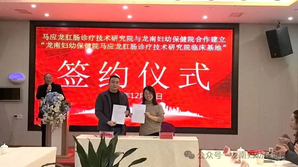 12月17日上午,马应龙与龙南妇幼保健院共建“龙南妇幼保健院马应龙肛肠诊疗技术研究院临床基地”签约仪式隆重举行。这标志着双方正式开启共建合作,为龙南市及周边地区百姓提供更加优质的肛肠诊疗服务。