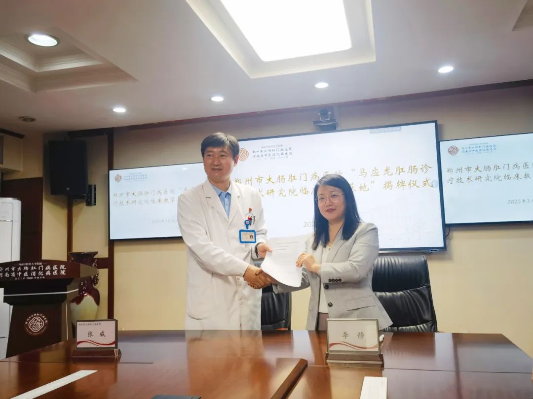 郑州市大肠肛门病医院主攻便秘、溃疡性结肠炎等疾病的研究,医院痔瘘科为国家中医药管理局重点专科、卫生部临床重点专科、河南省中医药管理局重点专科;马应龙肛肠诊疗技术研究院则在肛肠疾病技术创新与标准化诊疗方案推广方面具有行业领先地位。此次合作依托医院的临床资源与研究院的技术优势,将重点围绕教学培训、科研攻关及社会服务三大方向展开,通过规范化培训体系,为住院医师及基层医护人员提供肛肠疾病诊疗技术实训,提高临床医师理论水平和实践能力,加强教学基地规范化建设,助力肛肠学科未来发展。