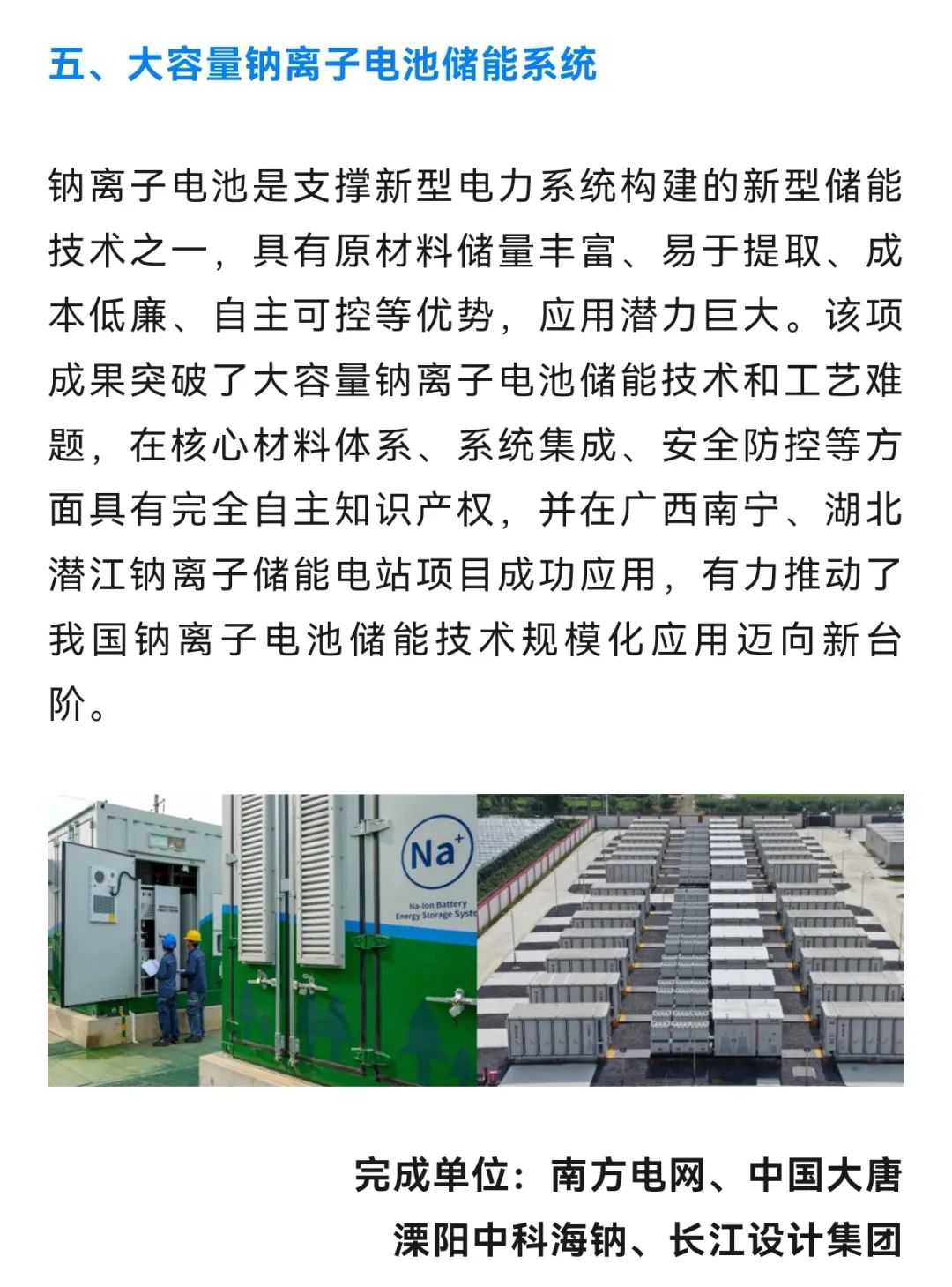 1月17日,国家能源局公布2024年度能源行业十大科技创新成果,“大容量钠离子储能系统”光荣入选。