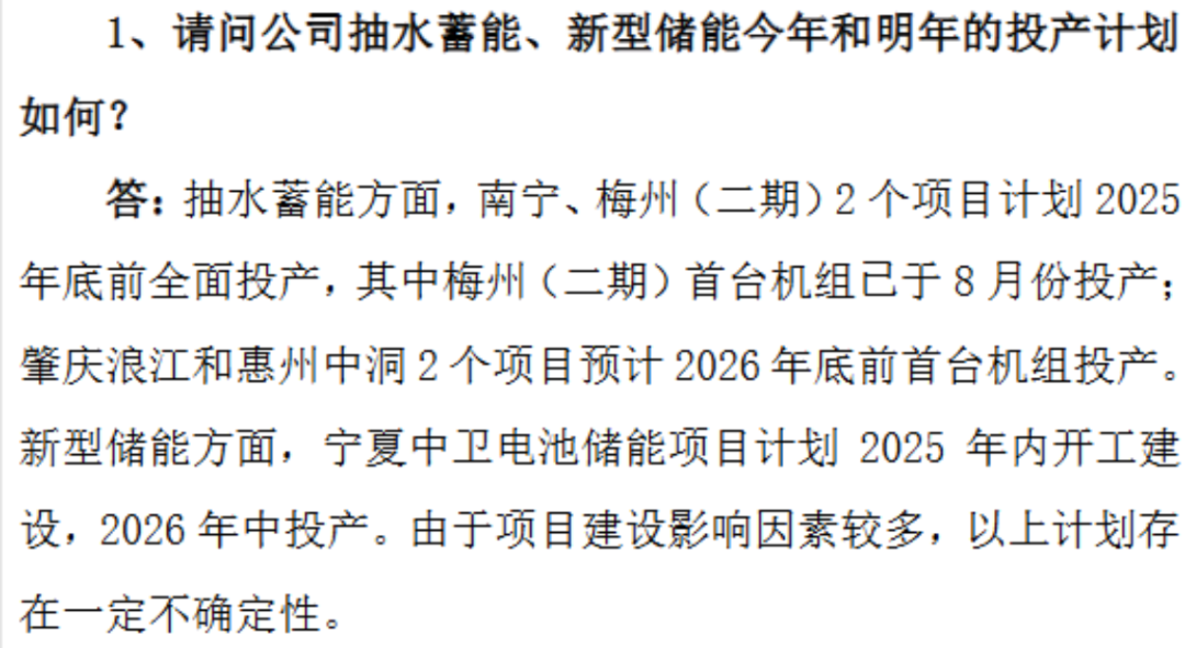 公司旗下梅蓄二期、广西南宁两座抽水蓄能电站分别在11月、12月全面投产,新增240万千瓦装机增量,这不仅为四季度业绩贡献了些许增量,更是公司抽水蓄能电站规模近三年来的首次扩张。
