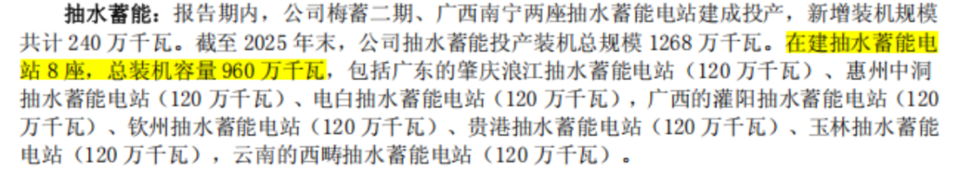 值得注意的是,年报中还提到,截至年末全国在运抽水蓄能总装机容量6,594万千瓦,其中年内新增装机748万千瓦。南方五省区(广东、广西、云南、贵州、海南)在运抽蓄装机容量1,268万千瓦,2025年新增投产240万千瓦。