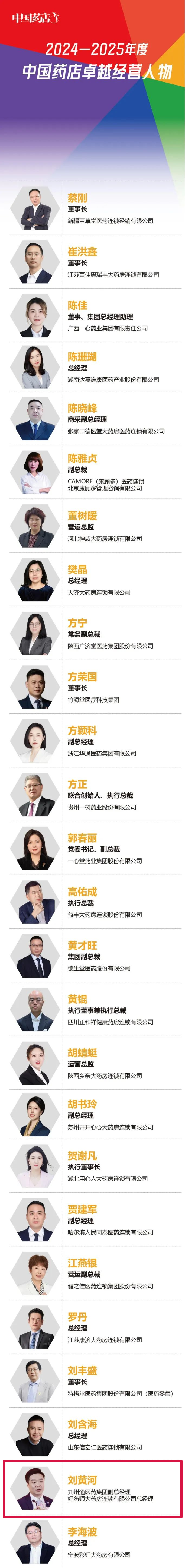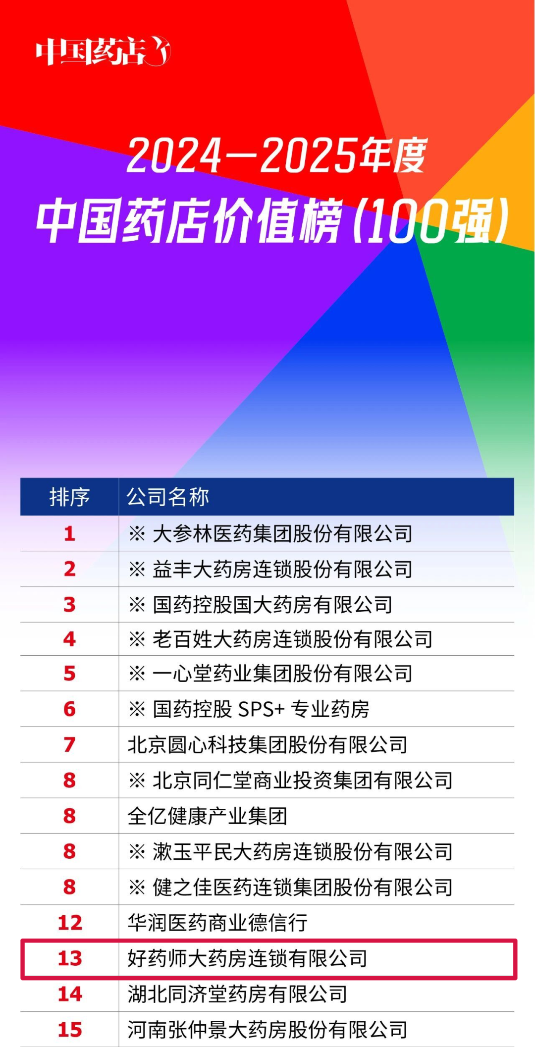 2月28日,“中国药店年度发展报告会(2024-2025)”(简称“百樯会”)在中国·青岛盛大启幕,在此次大会上,九州通旗下的好药师大药房凭借亮眼的成绩,再次荣膺“2024-2025年度中国药店价值榜百强”企业,位列第十三名,彰显其在复杂市场环境中的稳健实力与创新动能。好药师大药房总经理刘黄河先生凭借其卓越的领导力与医药行业的创新实践,同时荣获“百樯金奖?2024-2025年度中国药店卓越经营人物”。