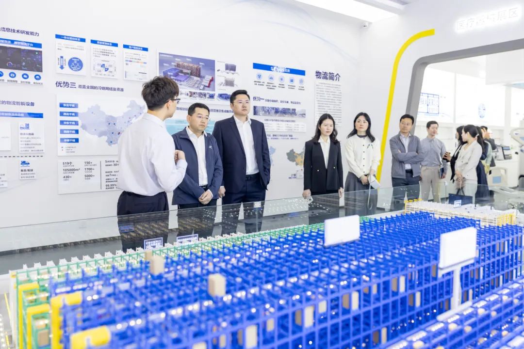 4月18日上午,湖北省科技投资集团(以下简称“湖北科投”)董事长刘坤、总经理曾玉梅、光谷生物城产业发展处副处长赵翔一行莅临九州通医药集团股份有限公司(以下简称“九州通”或“公司”)座谈交流,并参观了九州通东西湖公募REITs项目与数字化展厅,实地调研了公司核心物流资产。九州通副董事长刘兆年、副总经理刘亮、副总经理苏熙凌、楚昌基金副总经理李璟璟等陪同参观并开展交流。