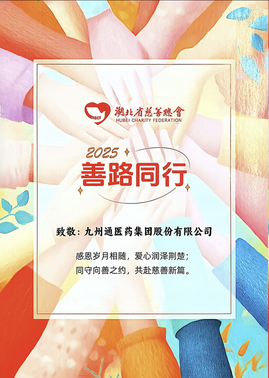 此次收到来自湖北省慈善总会的感谢信并荣获“爱心捐赠企业”称号,既是对公司公益慈善工作的充分肯定,更是对未来前行的莫大鞭策。未来,九州通将继续践行“呵护民众健康”的企业使命,持续深耕医药健康主业,构建更稳健、更健康、更可持续发展的企业。
