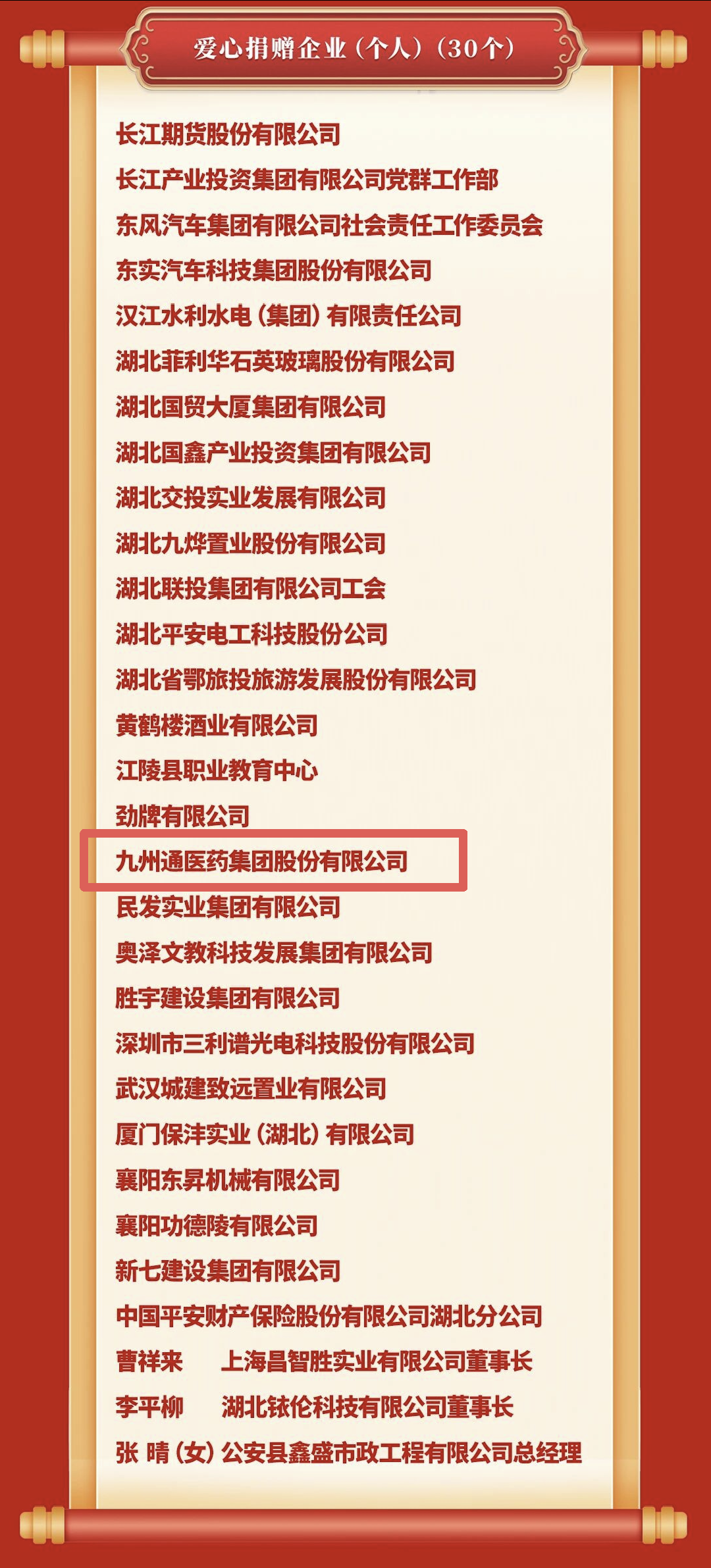 此前,湖北省人民政府发布《湖北省人民政府关于颁发第二届湖北慈善奖的决定》,九州通荣获“爱心捐赠企业”。