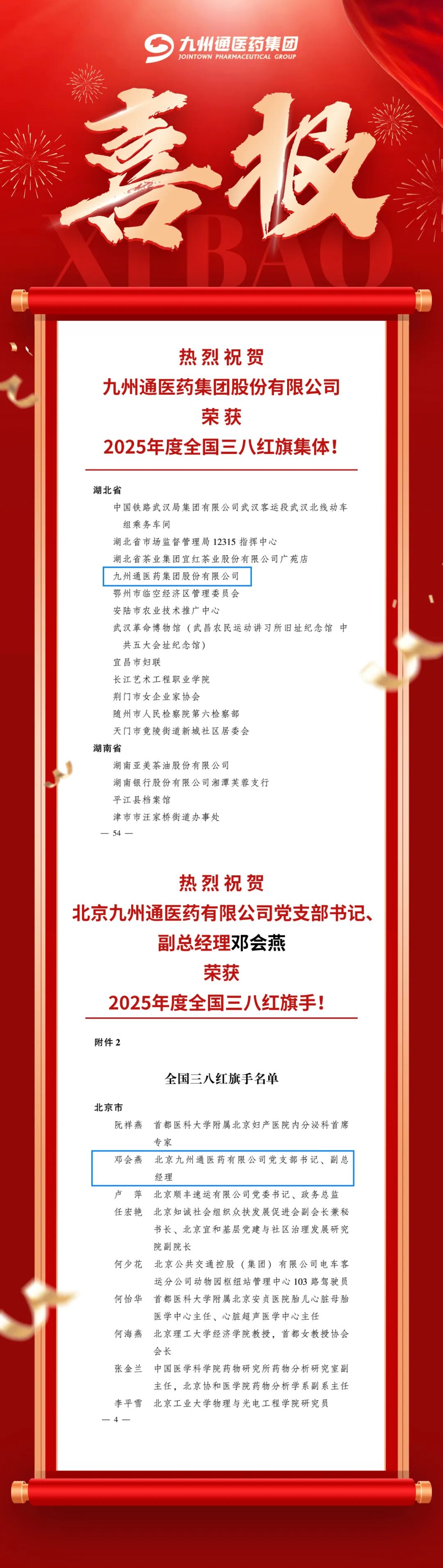 喜报 | 九州通获评“2025年度全国三八红旗集体”称号