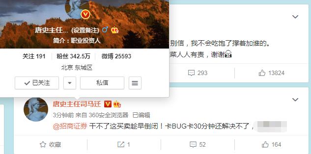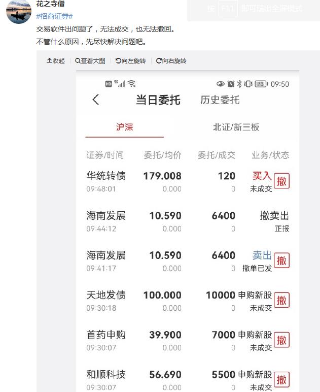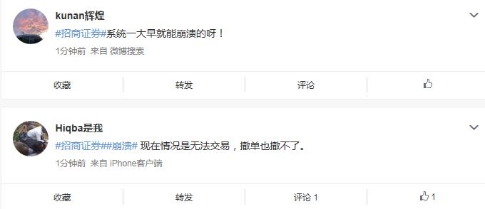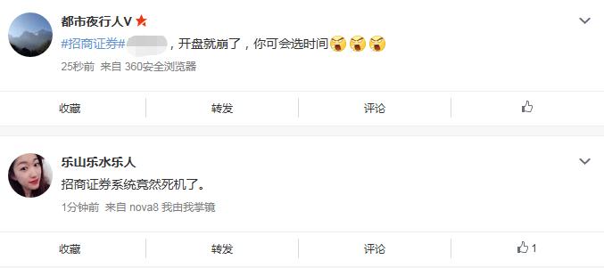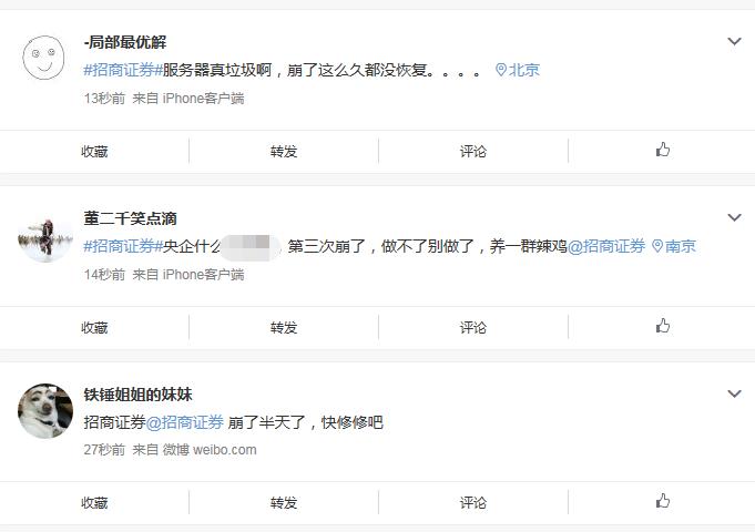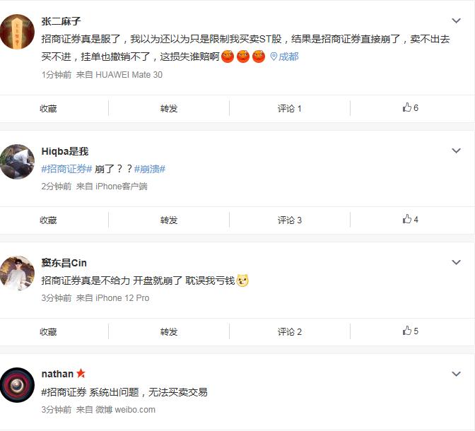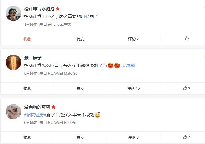 另外,三百多万粉丝的大V也在吐槽,@招商证券干不了这买卖趁早倒闭!卡BUG卡30分钟还解决不了。