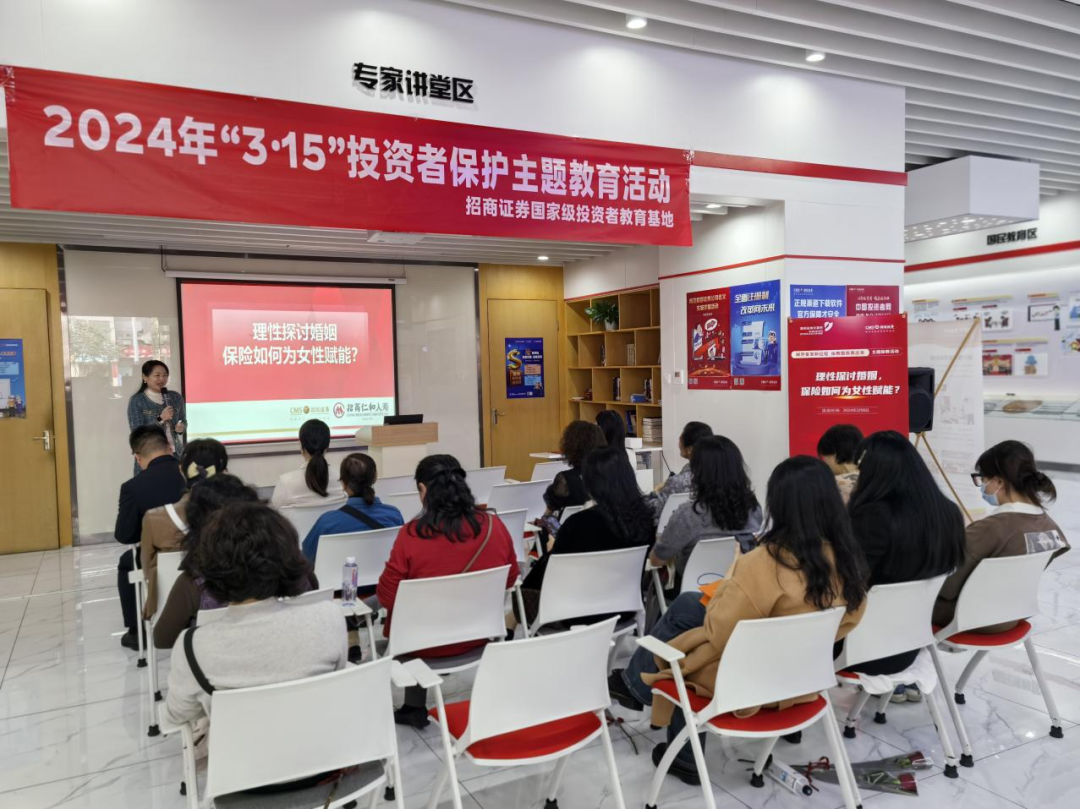 3月8日下午,招商证券国家级投教基地邀请了近30名女性投资者共同参与主题为《理性探讨婚姻,保险如何为女性赋能?》的投教活动。