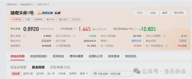 金石杂谈查询私募排排网发现,范思奇管理多款基金产品。截至其离职,金石杂谈随便查找两只产品,一款产品成立以来亏损了10.8%,回撤高达40%,规模反倒从去年底的500万做到了2500万。