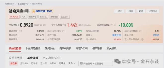 范思奇管理多款基金产品。截至其离职,金石杂谈随便查找两只产品,一款产品成立以来亏损了10.8%,回撤高达40%,规模反倒从去年底的500万做到了2500万。
