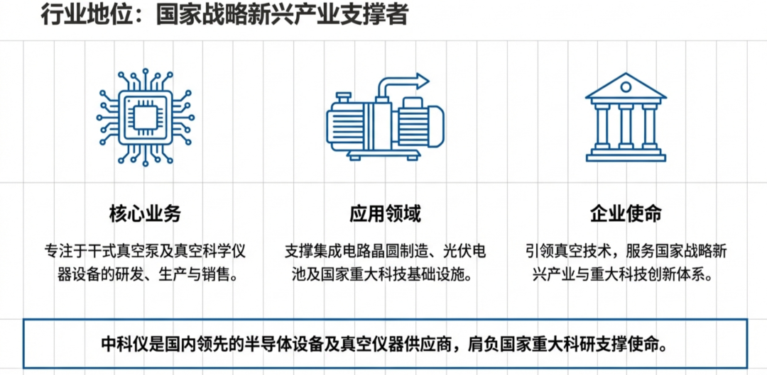 中国科学院沉阳科学仪器股份有限公司(以下简称“中科仪”)是中国领先的半导体制造设备核心部件提供商及真空科学仪器设备供应商,产品主要包括用于集成电路晶圆制造及光伏电池等泛半导体产品制造的干式真空泵,以及面向国家重大科技基础设施和科研领域的真空科学仪器设备。