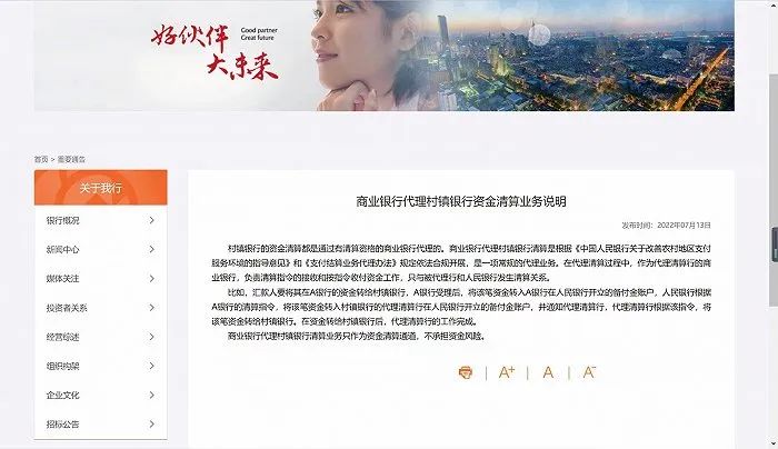 当日深夜,南京银行在官网发布《商业银行代理村镇银行资金清算业务说明》,回应代理村镇银行清算业务。