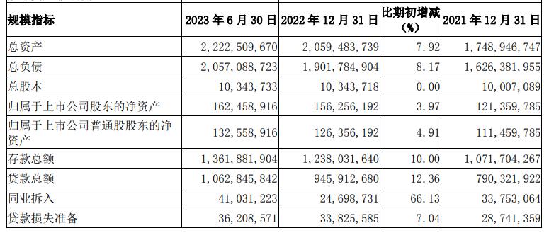 半年报显示,2023年6月末,南京银行资产总额22,225.10亿元,较上年末增加1,630.26亿元,增幅7.92%。贷款总额10,628.46亿元,较上年末增加1,169.33亿元,增幅12.36%。负债总额为20,570.89亿元,较上年末增加1,553.04亿元,增幅8.17%。存款总额13,618.82亿元,较上年末增加1,238.50亿元,增幅10.00%。