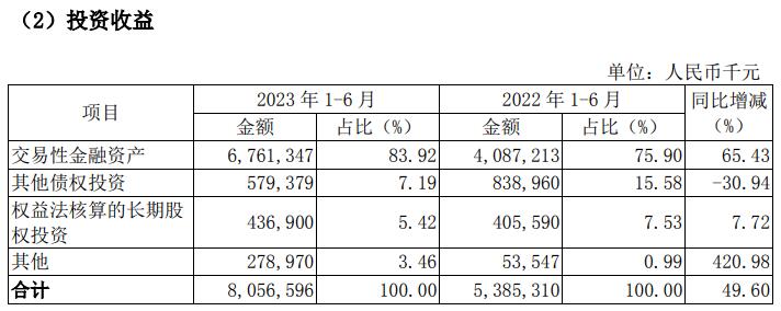 2023年1-6月,南京银行实现投资收益80.57亿元,同比增长49.60%。
