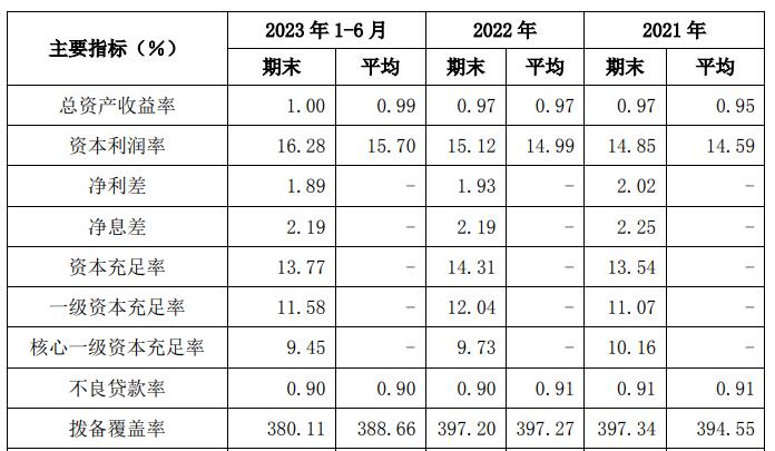 截至2023年6月末,南京银行资本充足率13.77%,上年末为14.31%;一级资本充足率11.58%,上年末为12.04%;核心一级资本充足率9.45%,上年末为9.73%。