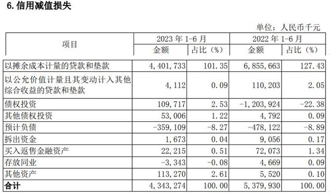2023年1-6月,南京银行信用减值损失43.43亿元,上年同期为53.80亿元。