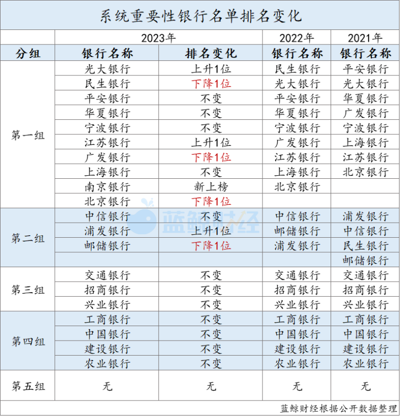 蓝鲸财经记者注意到,与前一次名单相比,本次名单最大的变化即银行数量从19家增至20家,南京银行首次入围并进入第一组行列。