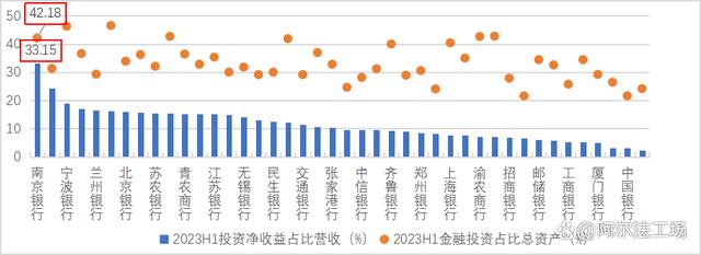 2023年上半年,南京银行投资收益(主要为债券)占营收的比重,位列上市银行第一。
