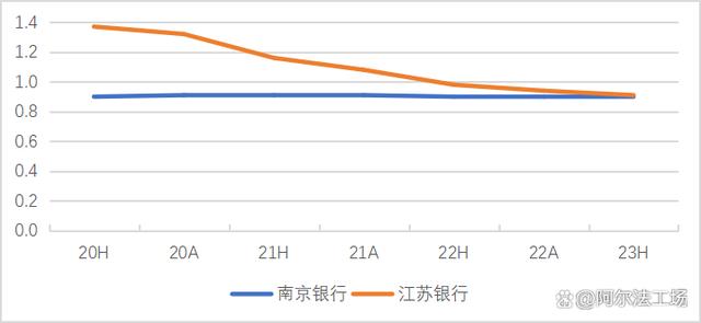 江苏银行不良率已降至南京银行同一水平(单位:%),来源:各银行财报,阿尔法工场整理
