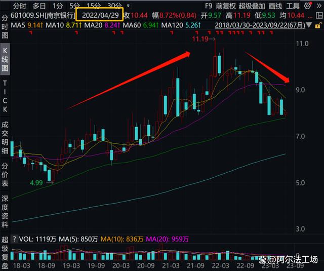 南京银行在2022Q2达到阶段性高点之后,延续下跌趋势,来源:Wind,阿尔法工场整理