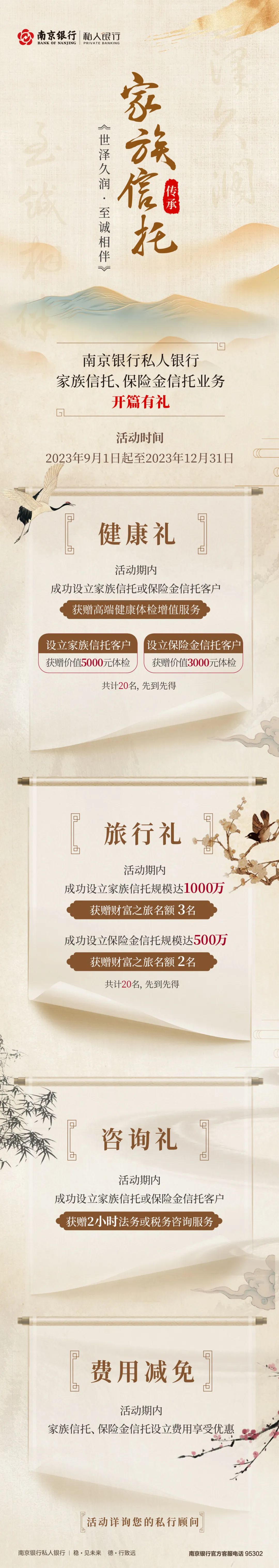 【传承】南京银行私人银行家族信托、保险金信托业务开篇有礼