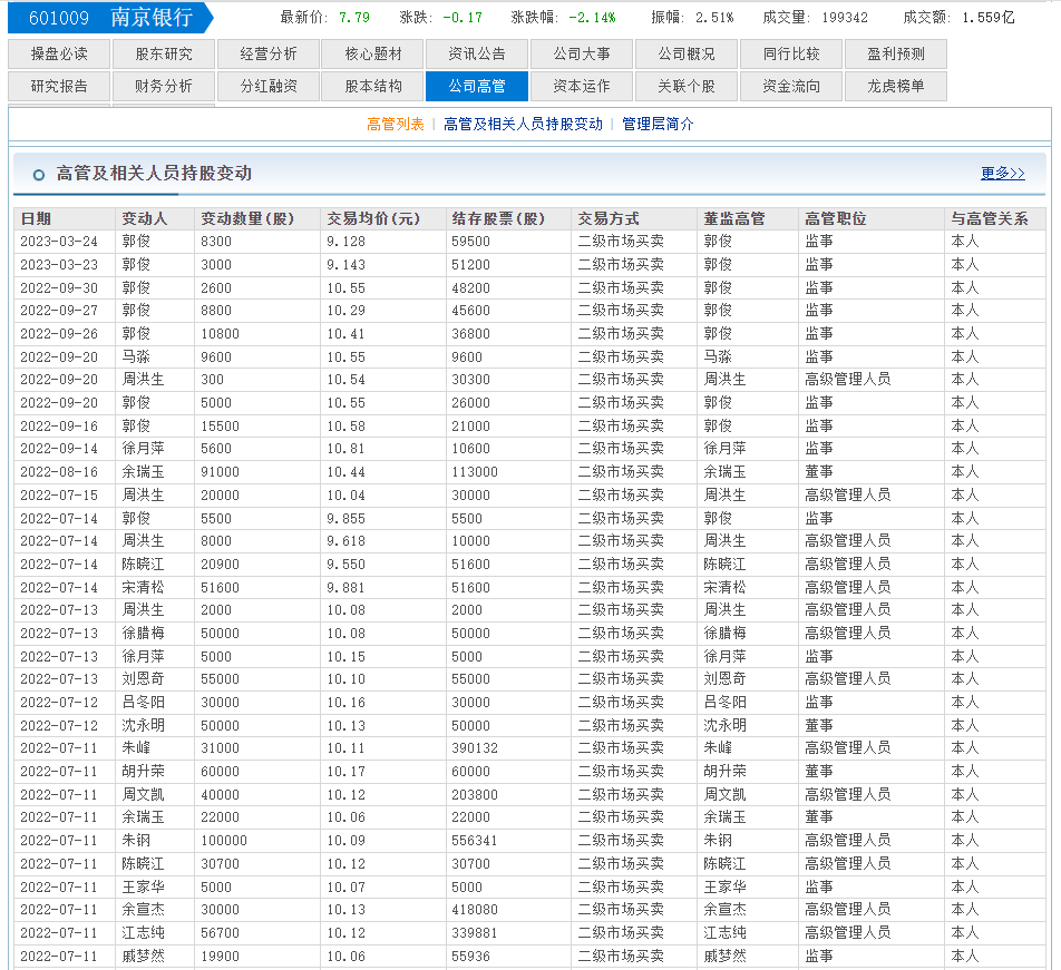 据统计,去年7月份以来南京银行的大批高管开始多批次增持,一直到今年3月份。