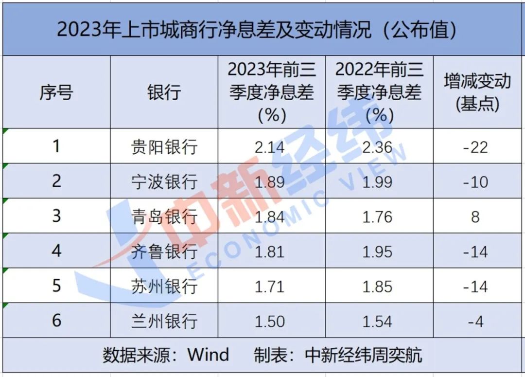 从变动幅度看,贵阳银行前三季度净息差同比下降22个基点,降幅最大。此外,齐鲁银行和苏州银行同比下降14个基点。