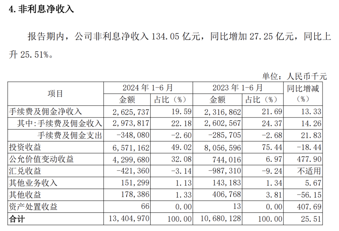 从南京银行营收结构来看,尽管上半年利息净收入受压,同比下降5.97%,但非利息收入的显著增长,尤其是公允价值变动收益的激增,有效弥补了利息收入的下滑。