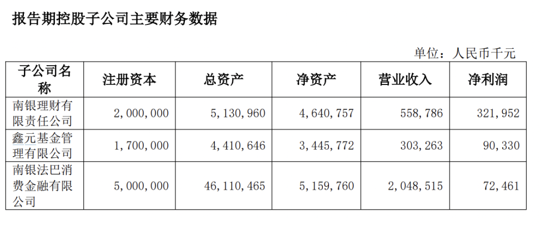 上半年,南京银行控股子公司表现亮眼。数据显示,南银理财上半年实现净利润3.21亿元,鑫元基金实现净利润0.9亿元,南银法巴消金实现净利润0.72亿元。