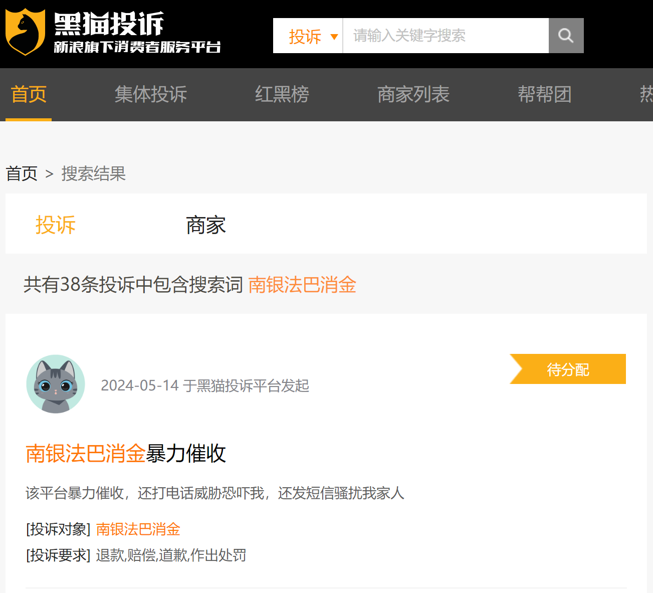 与此同时,南京银行及旗下消金子公司南银法巴消金也不“消停”,内控漏洞频发,收到不少有关暴力催收、网贷利息过高等投诉。
