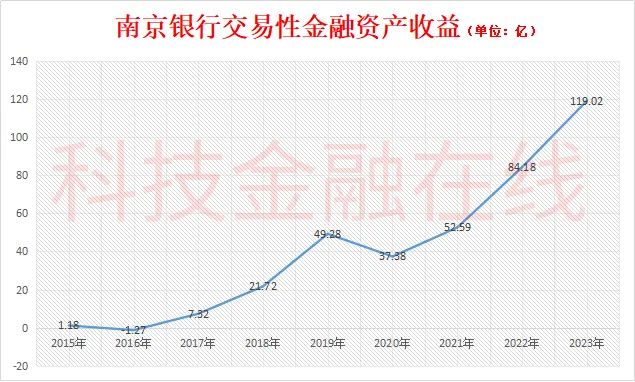 2015年,南京银行的交易性金融资产持有量大概为200亿,十年时间已经翻了20多倍。