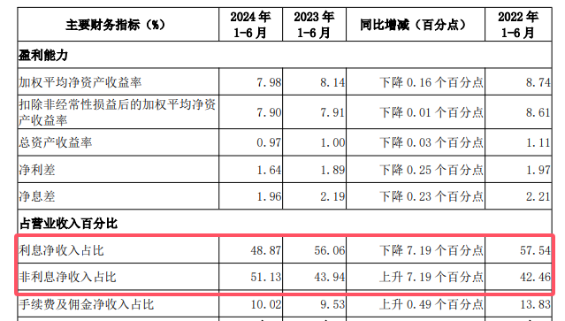 非利息净收入占比超过了利息净收入。