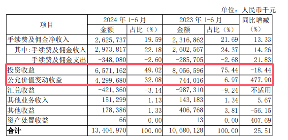 南京银行上半年非吸收入之所以实现增长,“得益于”公允价值变动收益。