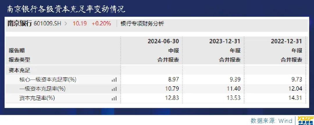 据中报信息,南京银行的资本充足率、一级资本充足率和核心一级资本充足率均出现下滑,分别为12.83%、10.79%、8.97%,均较上年末出现不同程度的下滑,对比2022年末更呈现加剧下滑趋势。目前该类指标已经逼近监管红线。