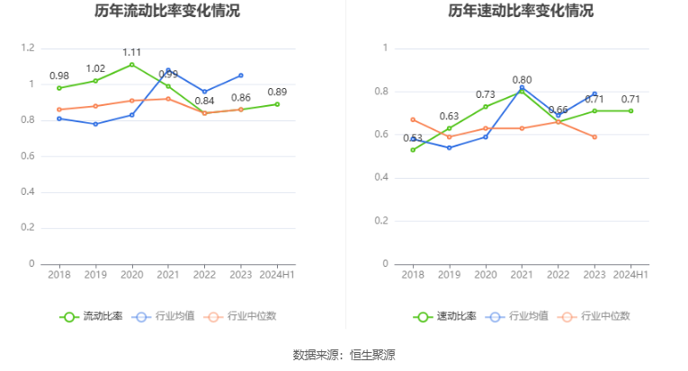 2024年上半年,公司流动比率为0.89,速动比率为0.71。