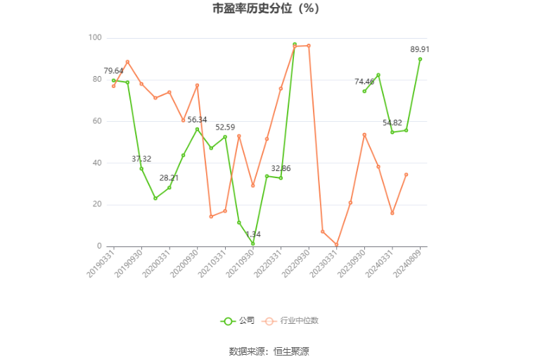 市盈率为负时,不显示当期分位数,会导致折线图中断。