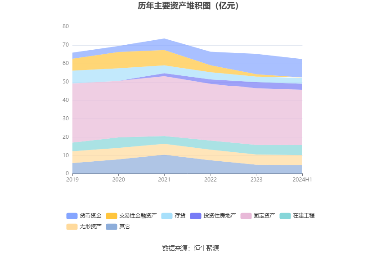 资产重大变化方面,截至2024年上半年末,公司交易性金融资产较上年末减少74.51%,占公司总资产比重下降1.48个百分点;货币资金较上年末减少9.99%,占公司总资产比重下降1.00个百分点;固定资产较上年末减少2.44%,占公司总资产比重上升0.94个百分点;在建工程较上年末增加4.36%,占公司总资产比重上升0.73个百分点。