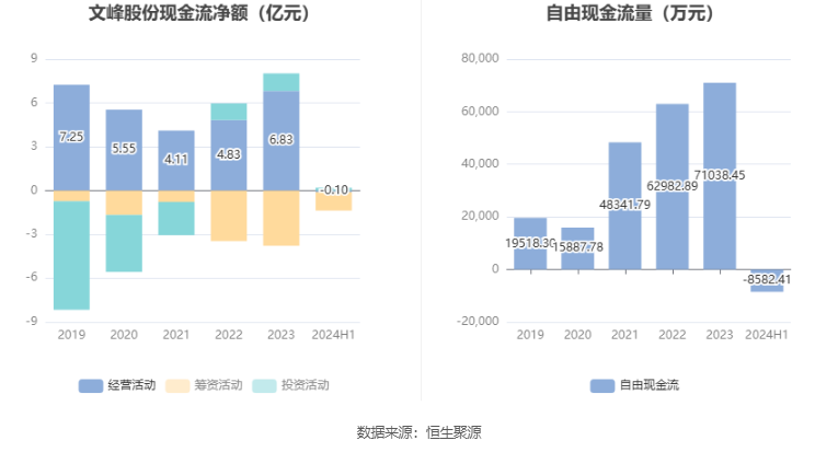 进一步统计发现,2024年上半年公司自由现金流为-8582.41万元,上年同期为47499.50万元。