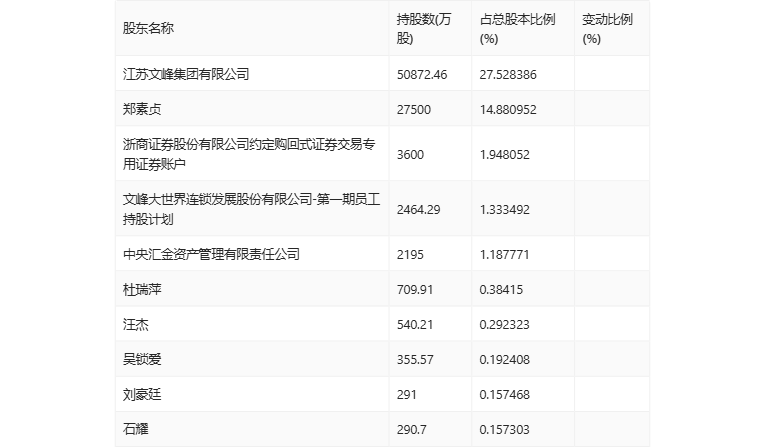 值得注意的是,根据半年报数据,文峰股份21.80%股份处于质押状态。其中,第一大股东江苏文峰集团有限公司质押4.03亿股公司股份,占其全部持股的79.20%。