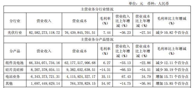 财务数据显示,2024年隆基绿能的毛利率仅为7.44%,同比减少超10个百分点。据悉,隆基绿能布局组件及电池、硅片及硅棒、电站业务等环节,其中硅片及硅棒业务毛利率甚至为负数,为-14.31%,同比减少30.19个百分点;组件及电池业务毛利率也处于大幅下滑的态势,该板块业务毛利率仅为6.27%,同比减少12.11个百分点。