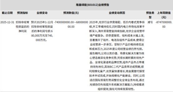 2025年的隆基,彻底打破了“稳健”的标签,业绩预告的巨亏,让不少投资者大跌眼镜。2026年1月18日,隆基披露2025年业绩预告,全年归母净亏损60-65亿元,扣非净亏损更是达到68-74亿元,创下公司亏损纪录。更让人难以接受的是,结合三季报34.03亿元的净亏损,隆基Q4单季净亏损26-31亿元,环比Q3的8.34亿元亏损,幅度扩大3倍之多。