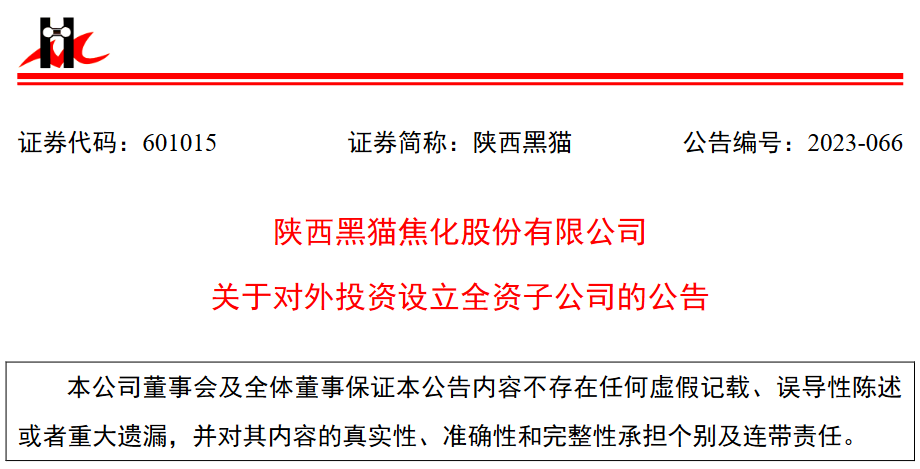2023年11月13日,陕西黑猫召开第五届董事会第三十五次会议,审议通过了《关于对外投资设立全资子公司的议案》。根据《公司章程》和《投资管理制度》及相关法律法规的规定,本次投资事项无需提交股东大会审议批准。本次对外投资不涉及关联交易,亦不构成重大资产重组。