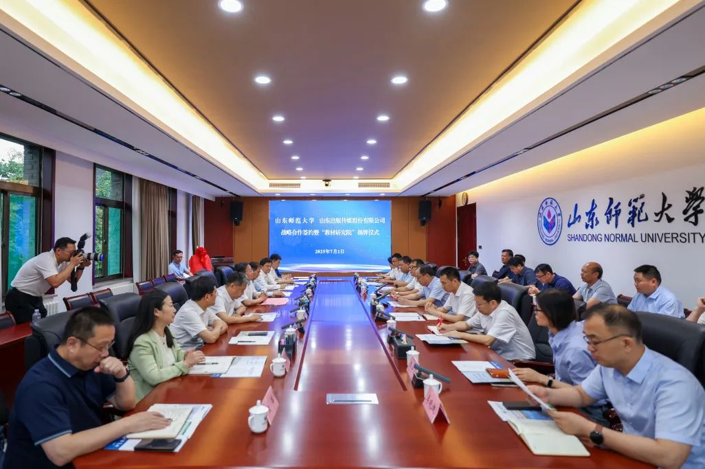 7月1日,山东出版集团党委书记、董事长刘文强与山东师范大学党委书记冯继康举行工作会谈,签署战略合作协议并举办“教材研究院”揭牌仪式。出版集团党委委员、董事,股份公司党委副书记、董事、总经理申维龙,山东师范大学党委副书记许双庆等参加,山东师范大学党委常委、副校长张茂聪主持活动。
