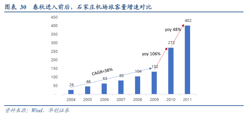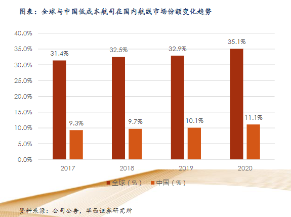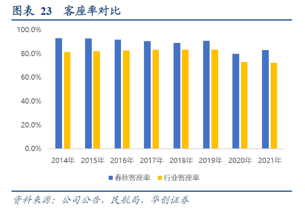 2019年国内航空客运因私出行占比超过60%。因私出行成为主流,票价将是更多旅客选择航班的第一重要指标。在这一点上,时常能把价格“打骨折”的春秋具有很大优势,并且春秋平常平均的客座率就达到95.4%,是国内民航最高客座率的航空公司,未来随着低成本航空的持续扩张,春秋具有很大的发展空间。