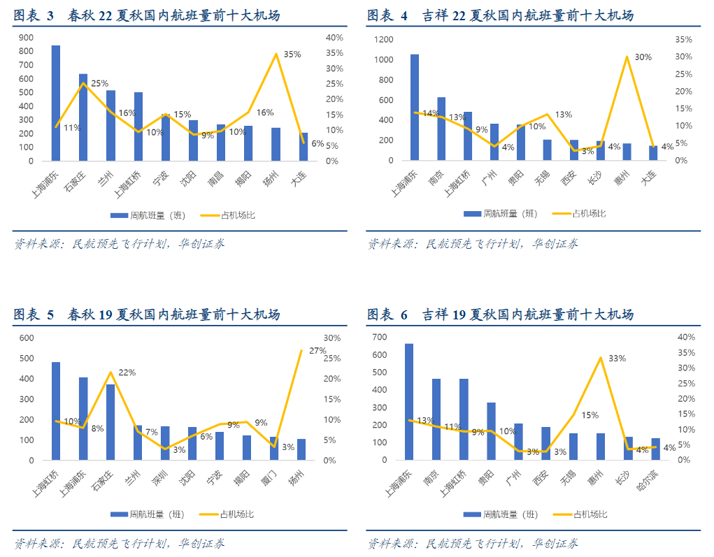 但除了主基地上海吉祥和春秋存在正面竞争外,两者的前十大机场几乎不重叠。