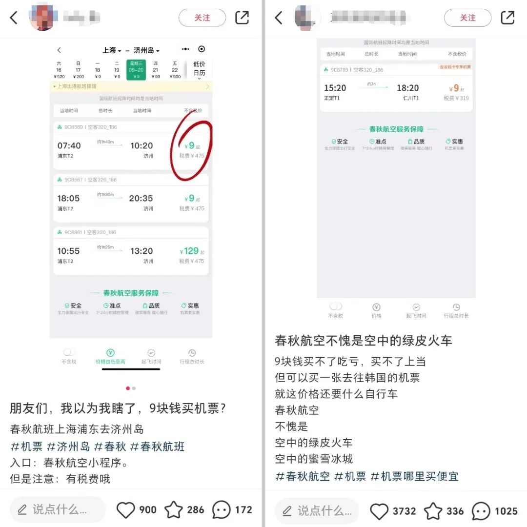 便宜,是春秋航空征服大多数乘客的大杀器。比如,从上海飞到大连往往只要550元,费用大概是高铁二等座票价的一半。还有很多9元机票,更是经常在社交媒体中被讨论。尽管它往往会附带有高额税费,但看起来,这更像是为了降低“仅退款”的成本。