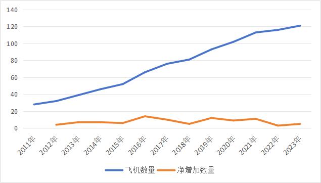 一开始春秋航空主要通过租赁形式拥有飞机,随着公司资金的充裕后逐渐自购飞机。据春秋航空招股书以及各年财报透露的数据统计,春秋航空自2012年-2022年的十年内时间里,每年净增加的总飞机数(自购加租赁)至少在三架以上。