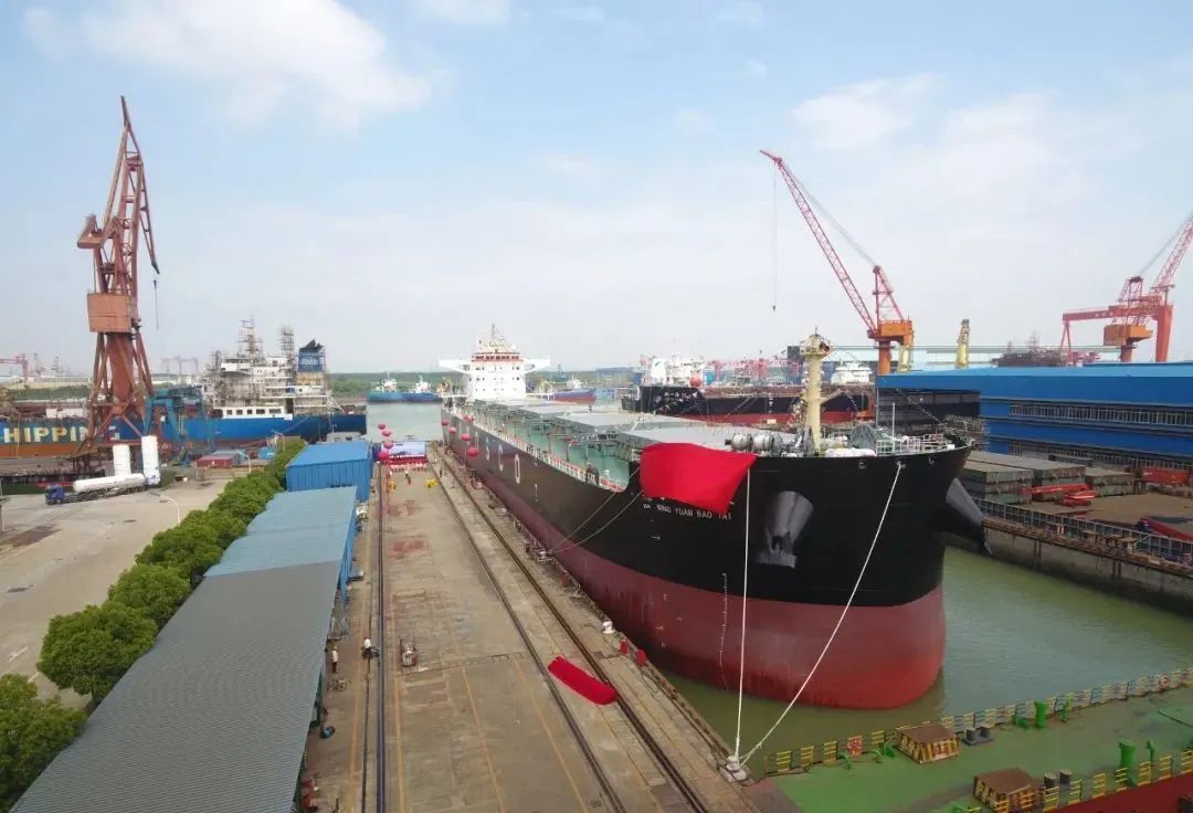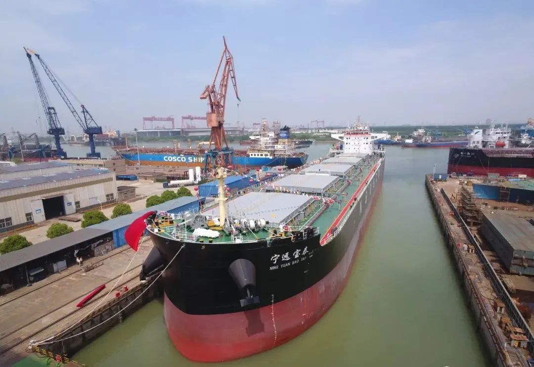 6月1日,由江苏海通海洋工程装备有限公司为宁波远洋建造的59000吨散货船“宁远宝泰”轮命名交付暨首航仪式在公司内港池码头隆重举行。