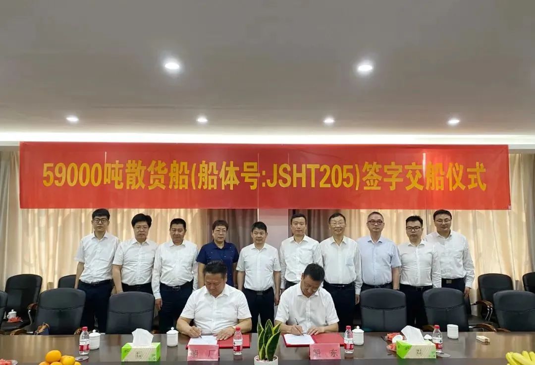 宁波远洋运输股份有限公司党委委员、副总经理陈加挺先生,海通海洋董事长/总经理金星先生分别代表各方签署交船文件。