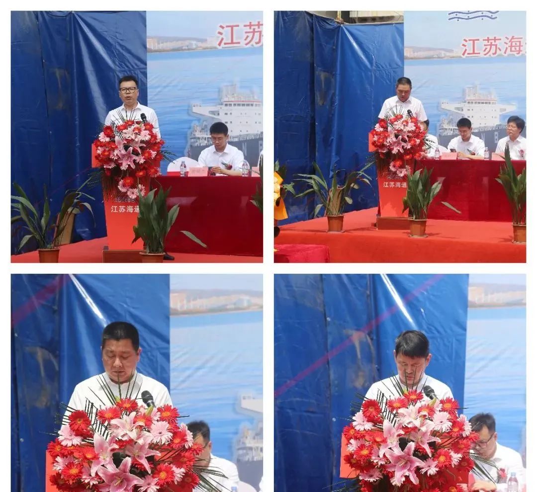 仪式由公司副总经理钱志东先生主持,公司副总经理王鹤飞先生、中国船级社南通办事处副主任罗奕鑫先生、宁波舟山港股份有限公司党委委员、副总经理丁送平先生分别致辞。